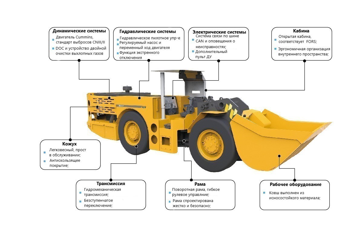 Открытая кабина, горизонтальное расположение, хороший обзор |